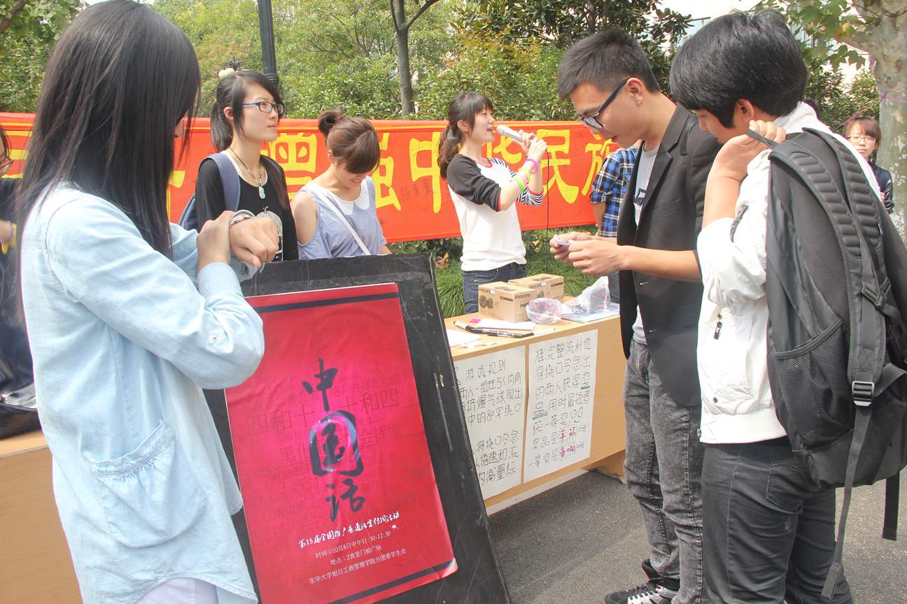 今年9月第三周,是第15个全国推广普通话宣传周。本届宣传周的宣传主题为:大力推广和规范使用国家通用语言文字。应教育部、中共中央宣传部、人力资源和社会保障部、文化部、国家广播电影电视总局、国家公务员局、国家语言文字工作委员会、解放军总政治部、共青团中央要求,为了进一步提高全体师生的语言文字规范,增强校园推普参与度,普及民族共同语来增强中华民族凝聚力。在此大背景下,51视频 于10月11日中午举办了普通话推广活动,活动由51视频 教务处主办,由51视频 分团委承办,活动现场互动积极,气氛热烈,取得了良好的效果。