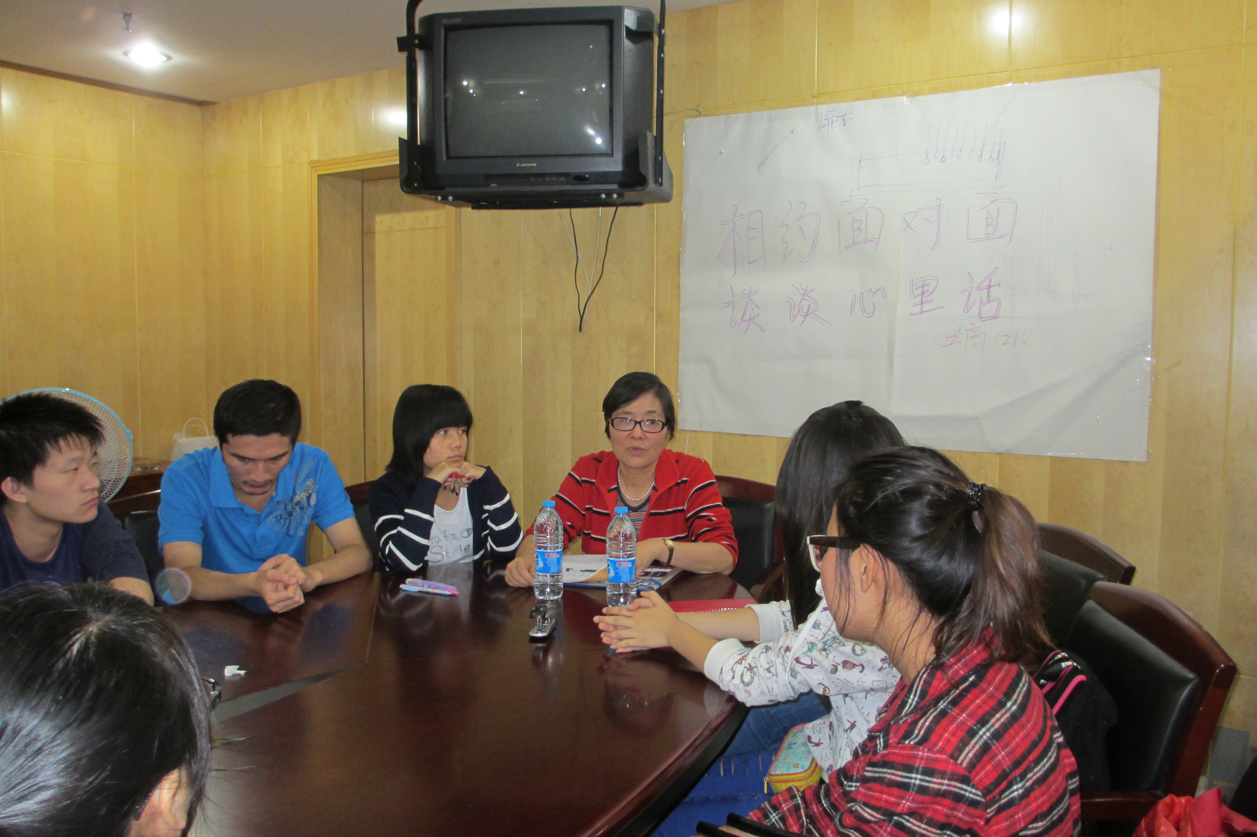 2012年10月25日中午12点,51视频 关心下一代工作委员会副主任曹为农老师与12级工商受助同学在12宿204办公室进行了一场以“关心下一代,师生心灵沟通”为主题的座谈会议。