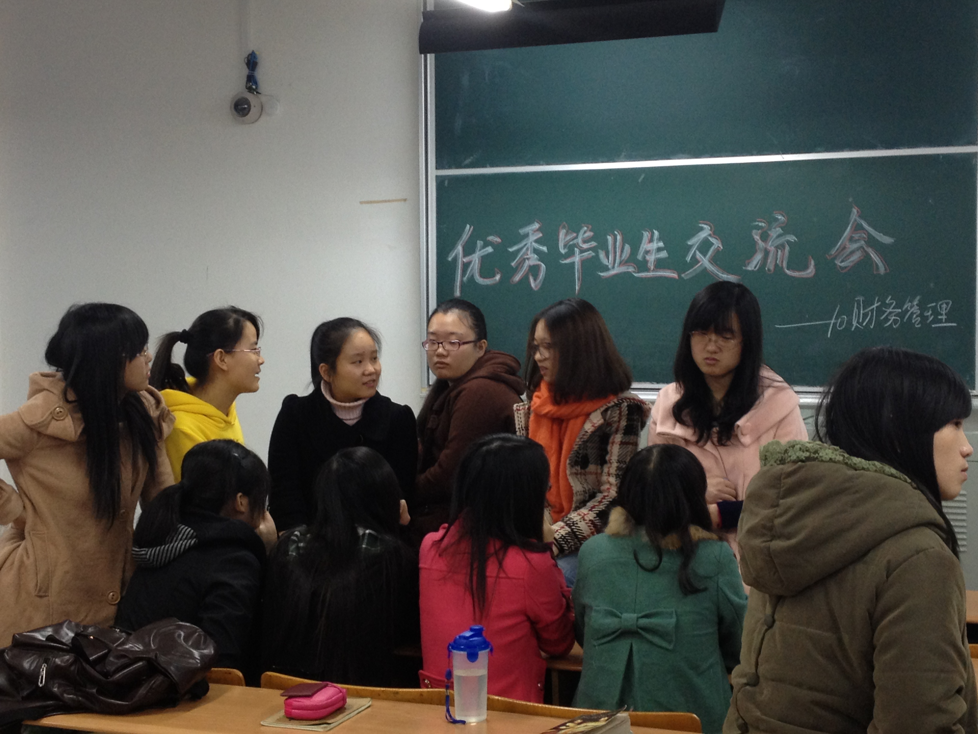 11月29日晚在4教303,10级财务专业的同学成功举办了主题为“优秀毕业生的经验分享”的讲座。讲座邀请到了沈洁老师(07级会计专业,直升研究生,现兼职辅导员。)赵亮学长(08级会计专业,现于全球五百强之一的飞利浦工作),李扬学长(08级会计,现于四大之一的安永华明会计师事务所工作),刘晓梅学姐(07级会计专业,考研到东华技术经济及管理专业)以及孙慰楠学长(08级财务管理专业,现于中国工商银行工作)为同学们分享他们的考研、直研经历,工作心得和人生体会。开始是每一位毕业生走上讲台为同学们分享他们当初在学校的经历,主要由以下几点:1、大三是大学关键的一年,每个人应该把握好自己的时间,明确自己毕业后的目标,然后为自己的目标努力奋斗;2、毕业后准备工作的同学,应该抓紧时间找一个好的实习单位实习,为自己毕业找工作奠定基础;3、相对在学校读书来说,其实工作压力还是很大的,学长学姐再次告诫我们要珍惜在学校的学习时间。