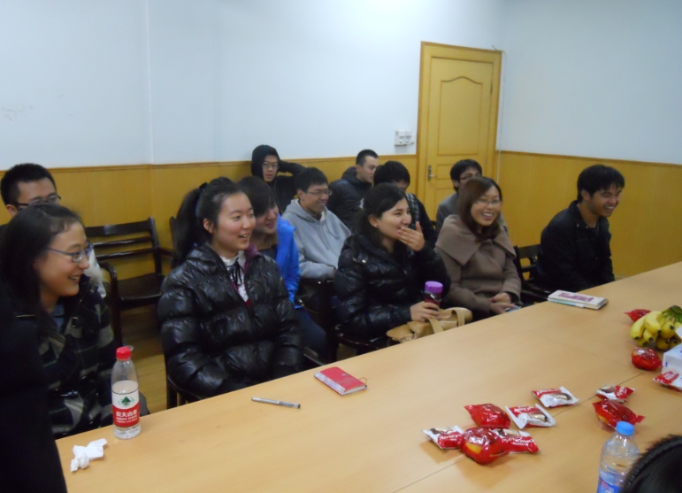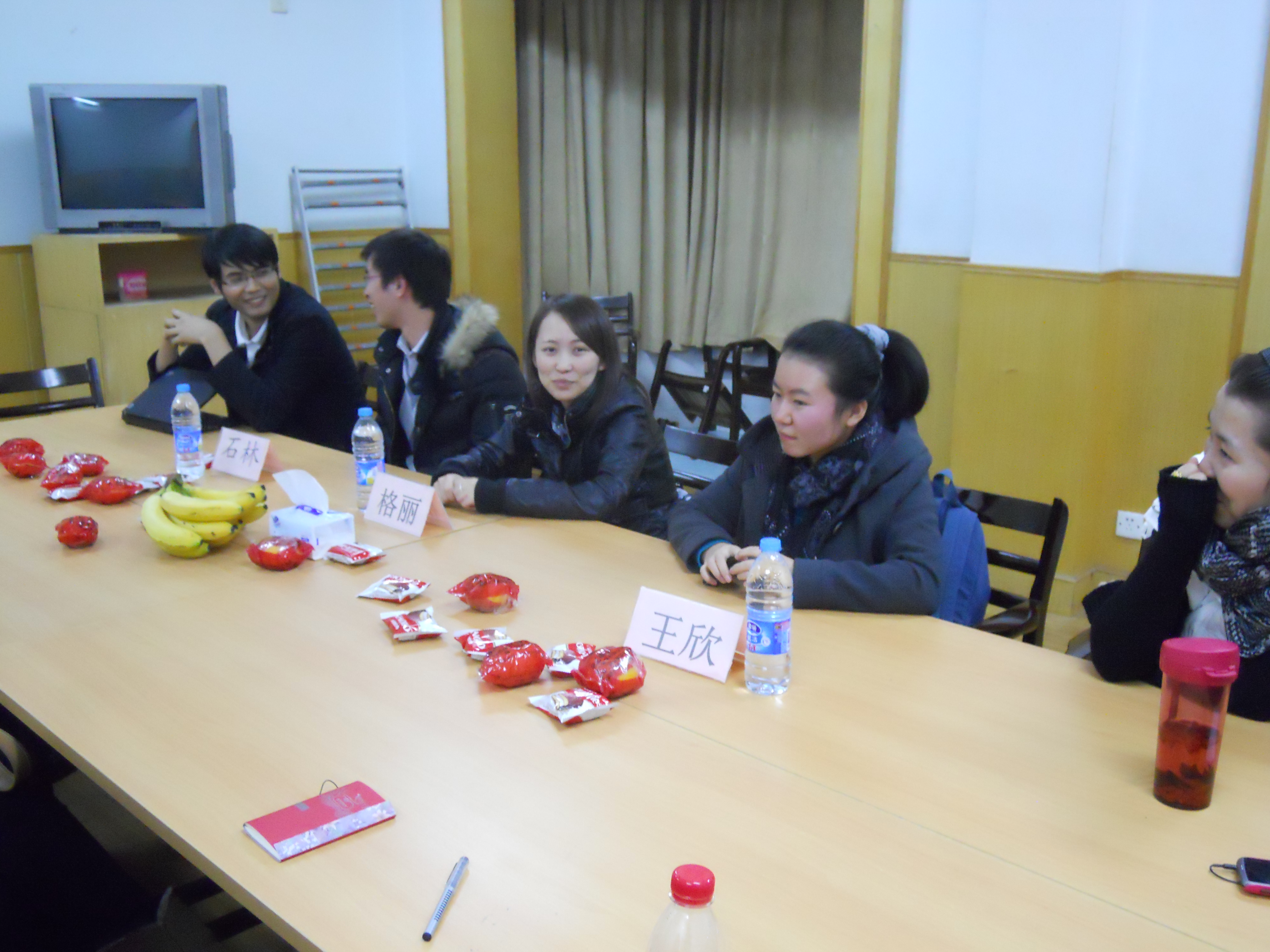会议在活泼的气氛中展开了。首先发言的是格丽学姐。格丽学姐毕业后先考上了家乡的公务员,之后返回上海发展。学姐陆续换了几家公司,现在在强生做数据处理的工作。学姐说,我们不但要高调做事,而且要低调做人,要避免和领导、同事发生冲突。