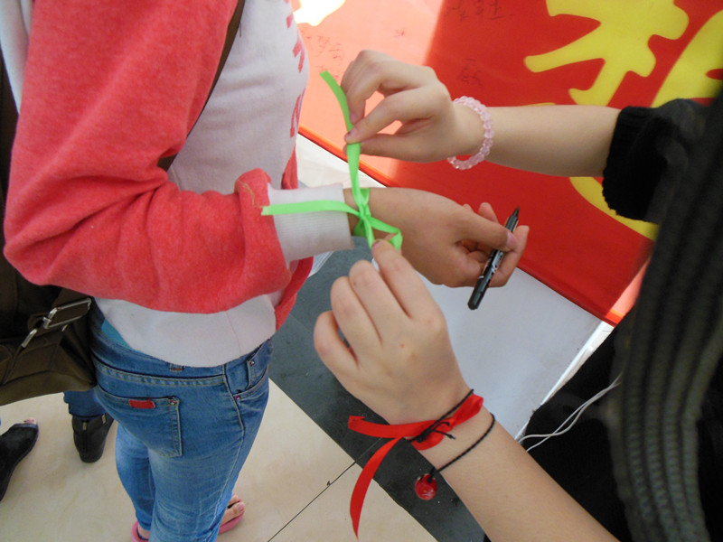 很快,长长的横幅上布满了同学们的签名,在欢乐的气氛中,我们的绿丝带红丝带也发完了。最后,我们拍了合影以及一段“为爱传递梦想”的视频作为此次活动的结尾。在这次充满意义的中国梦主题活动中,同学们收获良多,感触颇深,传递爱与梦想的同时,支部的每一位成员,再次充实了自己的梦想,充满了前行的力量,希望在今后的工作学习中,能再接再厉,争取更大的进步。
