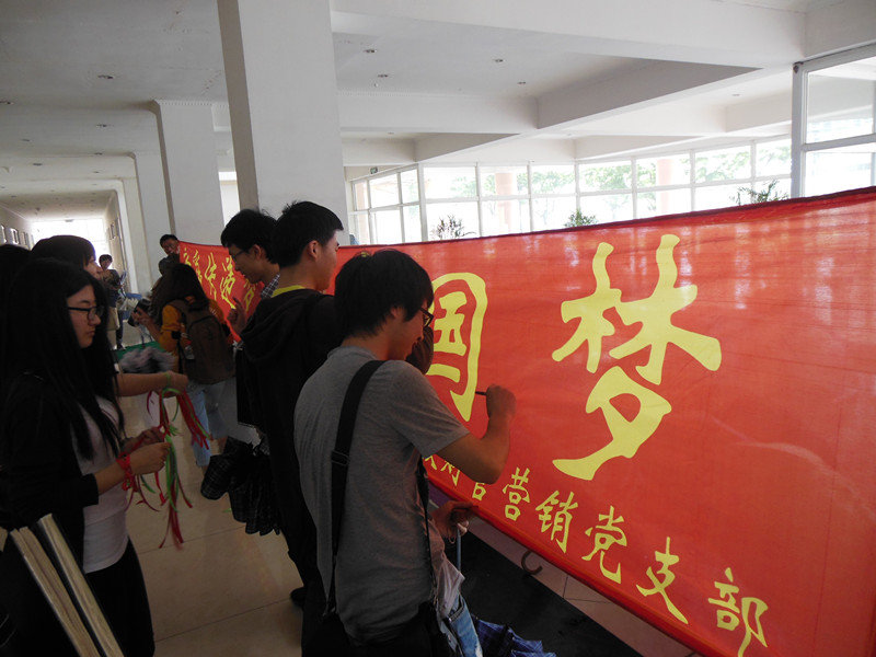 2012年11月29日,中共中央总书记习近平带领新一届中央领导集体参观中国国家博物馆“复兴之路”展览现场。习主席定义了“中国梦”--实现伟大复兴就是中华民族近代以来最伟大梦想,而且满怀信心地表示这个梦想“一定能实现”。 人生如船,梦想是帆,每个人都有一个只属于自己的梦,但我们同属于一个国家,只有每个人的一般梦想都有实现的可能,比如幸福,健康等,这样这个国家才能富强。这个国家富强了,我们的生活、梦想才能更美好,所以每个人的梦又与国家民族兴衰荣辱紧密相连。作为学生党员,10级财管营销支部,在51视频 校园内开展了“为爱传递梦想”主题活动。希望让更多的同学了解中国梦,心系雅安灾区人名,并珍视自己的梦想,为中华民族的伟大复兴而努力奋斗。