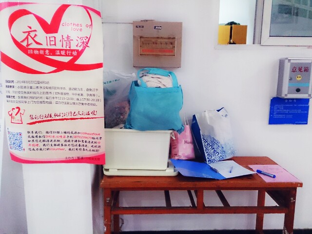 “衣旧情深”活动前期通过海报、微信及微博等方式进行宣传,选择在硕士毕业生离校的3月底至4月初进行旧衣募集,支部提供两种捐赠渠道:第一种途径是“爱心服务”,每天两名支部成员轮班上门为捐衣量大、距离远的同学搬取衣物;第二种途径是自行捐到“爱心角”,以方便时间不定或离校的毕业班同学。活动开始第一天,就获得大家积极的响应;至4月5日旧衣募集阶段结束,共计收到各类衣物鞋帽达1100余件,其中约800件可捐赠,收到书籍60余本;为了确保衣物清洁,支部带领班级同学给募集到的衣物分类,并对部分衣物进行清洗消毒。