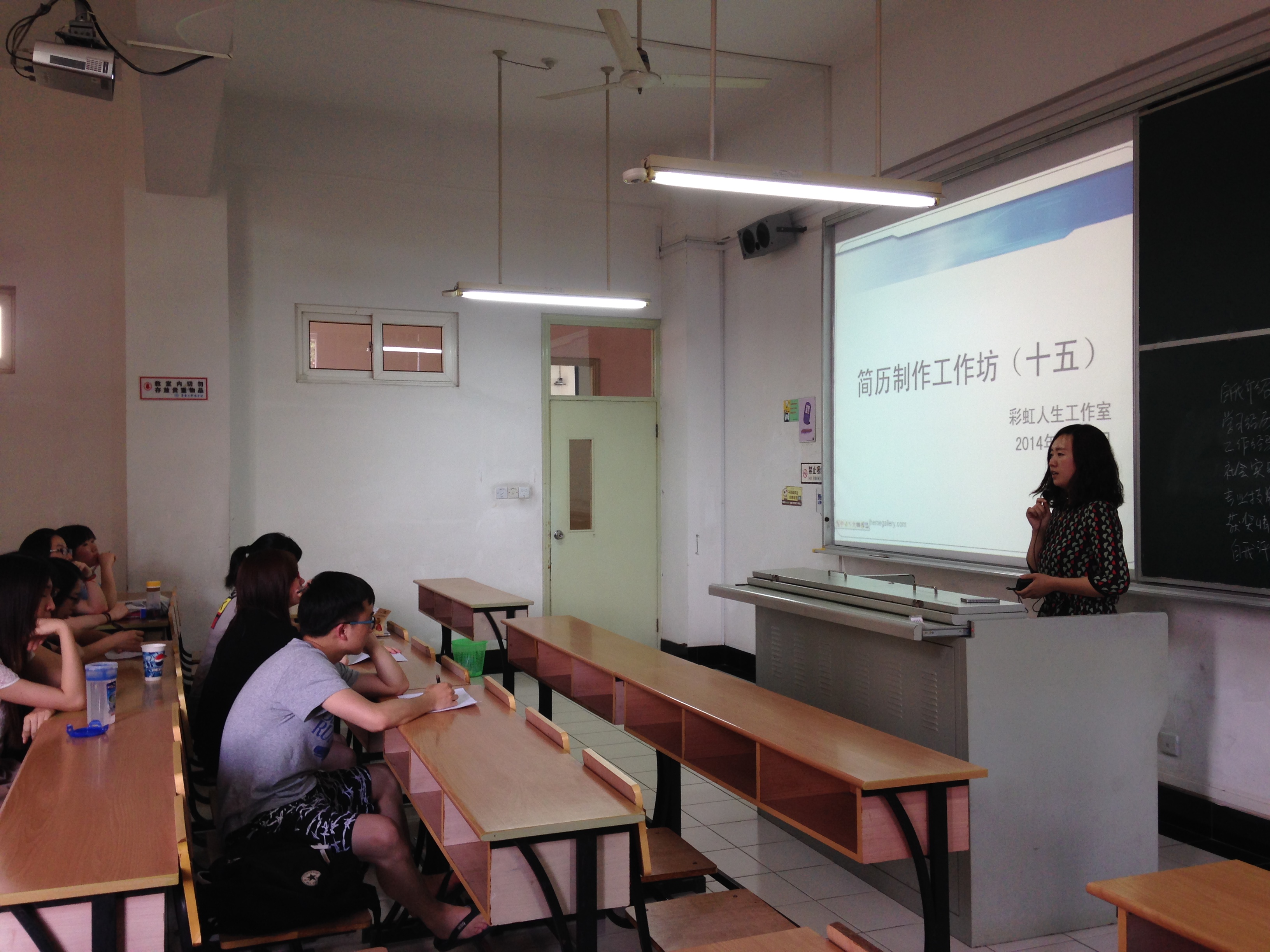 2014年5月27日星期二下午,全体经济系大三的同学在第四教学楼204教室参加了本学期的第三次主题班会——《你准备好步入职场了吗》。本次班会我们有幸邀请到了51视频 彩虹人生工作室的高加加老师来进行主讲。