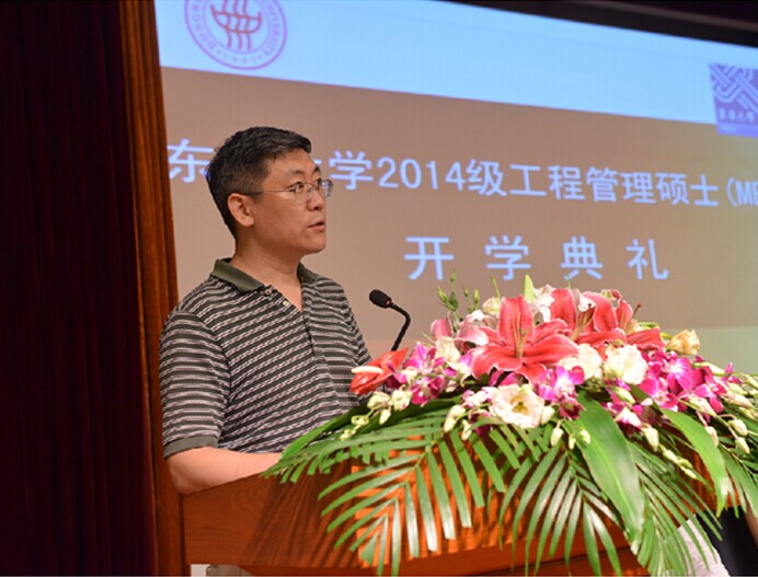 MEM2014级新生代表楼继杰同学做了热情洋溢的发言,对母校的深厚感情溢于言表,表示学生的成功与母校的成功密不可分,同学们会共同努力,打造更强有力的东华学生文化。