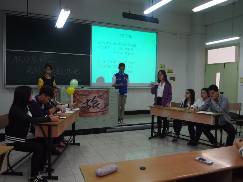看完院庆二十周年纪念视频,班会进入到一个十分重要的阶段:班级辩论赛。此次辩论赛班委特地挑选了“院庆的形式应该传统还是创新”作为主题,意在推动同学们从实际出发,加强对51视频 相关问题的思考,深化对院庆及51视频 的了解,充分开发思维。辩论赛以自由辩为主,沿袭一贯辩论形式正反方各四人共八位同学参加。正方支持“院庆形式应传统”的观点,以一辩同学的犀利辩词开场:从院庆的历史厚重感与特殊性质出发,以“传统为创新之源泉”的真知灼见为支撑,有力论证了己方的观点;而支持“院庆形式应创新”的反方也不甘示弱,犀利回击创新是历史必然趋势,我们的院庆也不应仅仅满足于传统而应用创新来提高吸引力。双方各持观点,举出如春晚创新等各类现实例子,你来我往数个回合,终于因时间限制问题而宣告结束,而作为观众的同学们也在辩论赛中得到启发,纷纷积极发表自己的看法,辩论赛精彩收官。