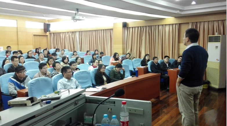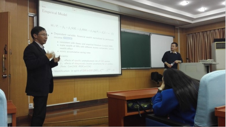 朱老师以其发表的一篇题为“Breaking the “Iron Rice Bowl and Precautionary Savings: Evidence from Chinese State-Owned Enterprises Reform”的论文开始了其高水平的学术报告,引起了在座同学们的兴趣。朱老师说,做研究的起点是从模拟开始的,学习这个领域权威学者的研究思路、方法和框架,运用到自己的研究中去,弄清楚结果是不是和国外的研究一致,这样一篇好文章就出来了。然后从实证的策略和实证的模型详细论述了如何才能做好高水平的计量实证研究,讲话幽默风趣,博得了同学们的阵阵掌声。