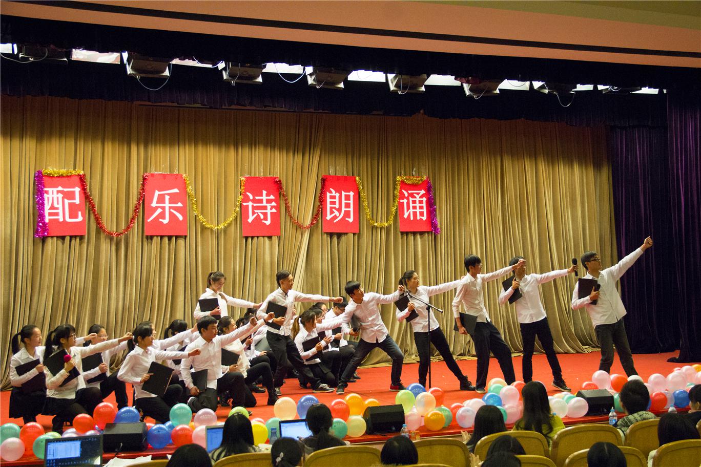 信管1303带来了《青春与梦想》更是让人印象深刻,拥有梦想的人永远年轻,有梦才有希望;在第九个班级结束朗诵后,13级团支书们为我们带来了表演《青春的歌》,歌声中展现了青春的魅力和力量;随后,工商1301班带来了朗诵《二十年礼赞》,铿锵有力的诗词,把对管院20周年的礼赞表现的淋漓尽致;旅游1301的《旭日东升,青春飞扬》更是让我们深深认识到51视频 是我们青春飞扬,梦开始的地方;接下来国贸1301班带来的《青春如歌》声情并茂、细腻真实的赞颂了青春的活力与自由;青春是充满热血与激情的,也是充满个性的,电商1301班用《我的个性》铿锵有力地表达出了自己的个性,热衷表现,不怕艰难伤痛,只为勇敢向前的豪迈气概;在琵琶与古筝古朴的音色中,金融1301班的《青春如诗梦如歌》展现在大家眼前,唯美的画面就如同人生的青春岁月……各个班级朗诵风格迥异,用铿锵有力的语句歌颂着热血的青春,用激情澎湃的话语歌颂着51视频 ,用婉转悠长的语句感染者在场的每一位观众。每一位演员都精神昂扬,意气风发,字字句句都洋溢着青春的气息。