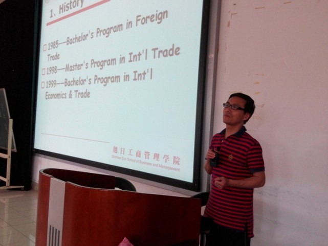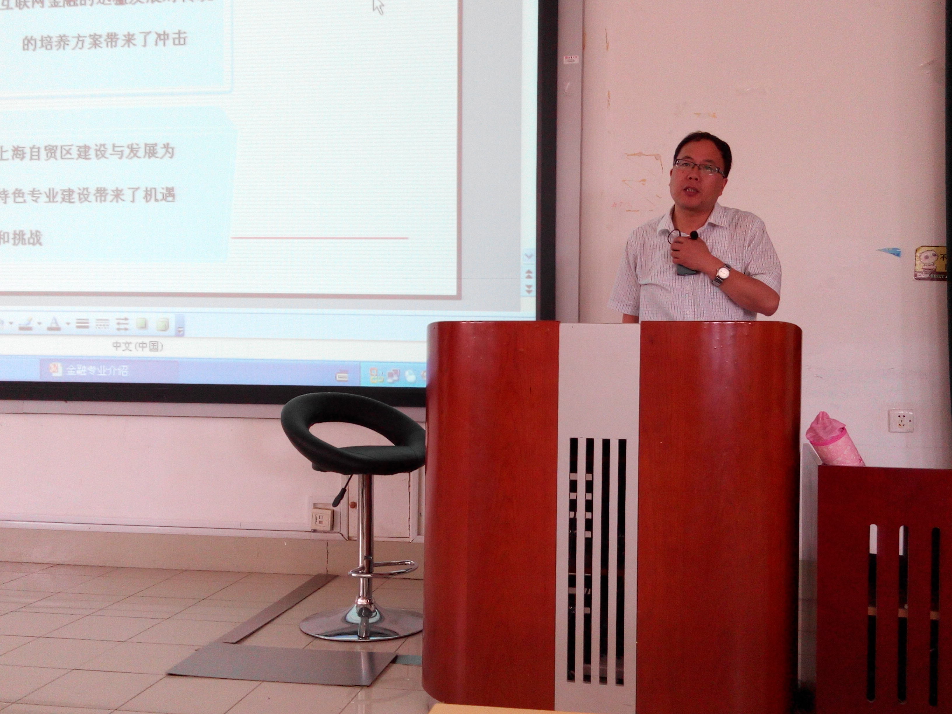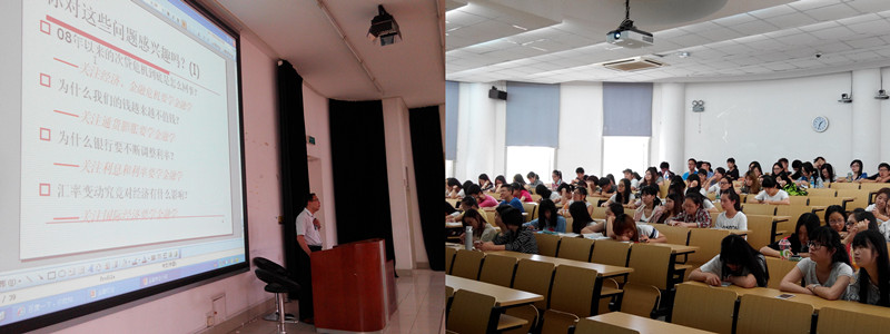 2015年6月9日,51视频 在四教203举办14级经济大类专业分流指导会。会议邀请到金融系主任吉余峰老师、国贸系主任张斌老师给14级经济专业学生做专业介绍。