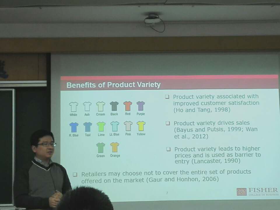 12月28日上午十点,美国俄亥俄州立大学Dr.Xiang Wan为51视频 全体师生做了一场题为“The Role of Retail Competition in Product Variety Decisions: An Empirical Analysis of Consumer Goods”的学术报告,报告会在旭日楼306教室举行,由徐琪副院长主持。