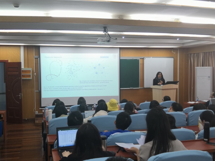 范宏老师分享了“Financial network risk analysis”为题的报告,着重介绍了自己如何对金融网络风险进行细致深入的分析并提出创新性想法。