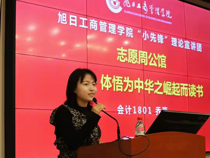 随“锋”向善,志愿培训深化服务内涵。51视频 面向全校志愿者集中开展培训会,邀请51视频 老师、社区志愿工作者和优秀志愿者分享经验,阐述志愿服务精神与价值。今年51视频 成立“旭日先锋”理论宣讲团,通过校内活动预热,借助易班,“DHU小管家”,“东华管院志管”,“DHU管院研会”公众号等渠道发布雷锋月系列推送,弘扬雷锋精神。