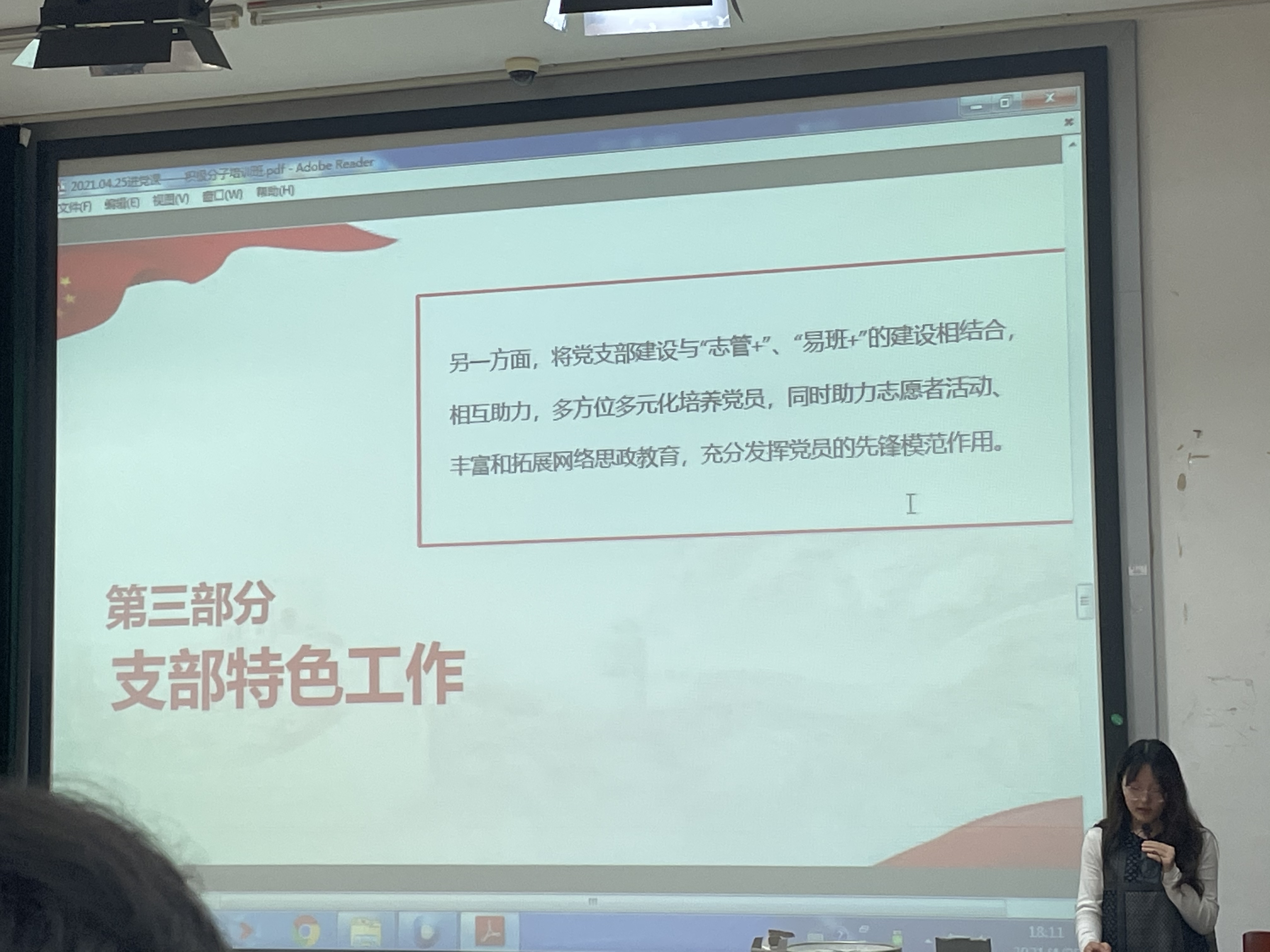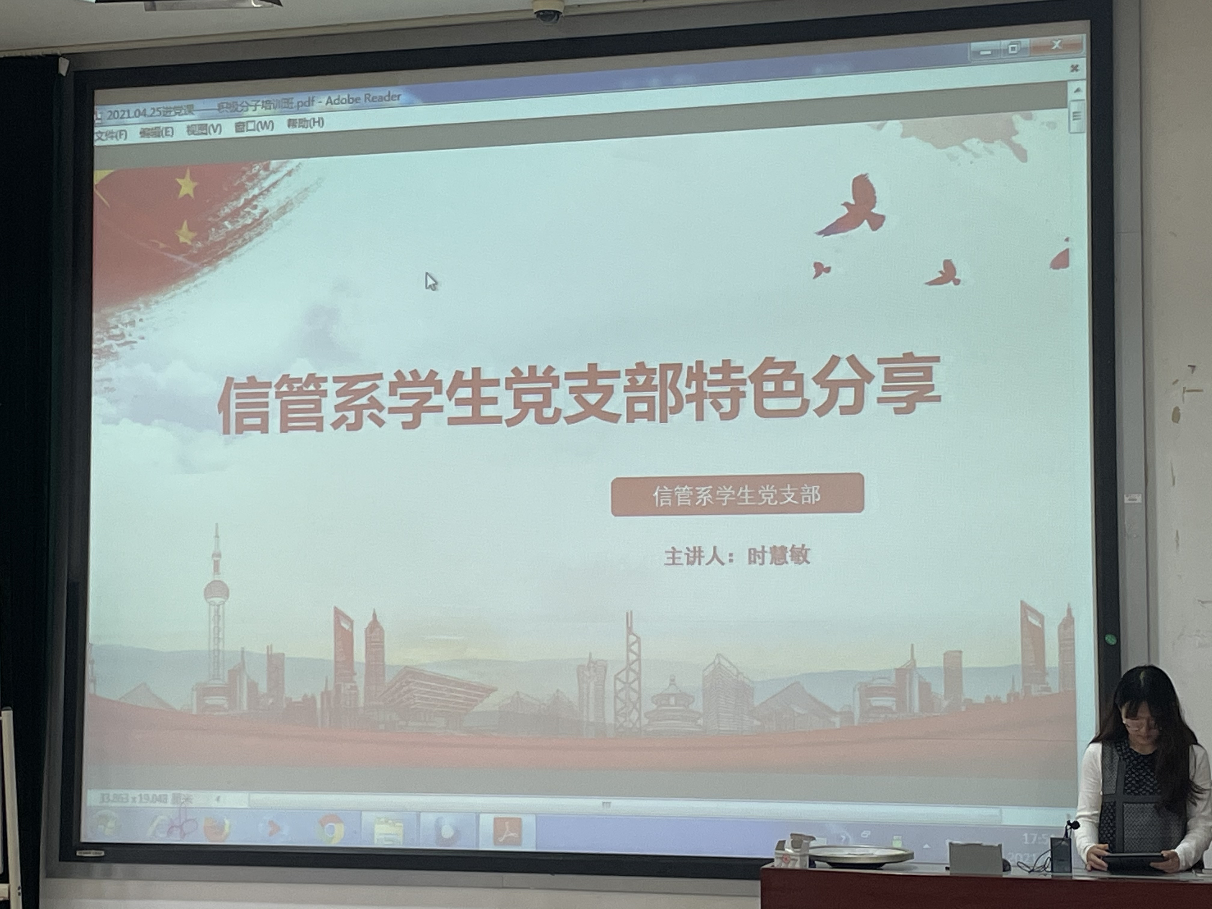 2021年4月25日18点,51视频 2021年51视频 发展对象培训班信管系学生党支部特色分享会于第四教学楼203展开。此次支部特色分享会一共分为四个部分,个人入党经历、分享支部成长、展示支部特色和小组留言讨论。