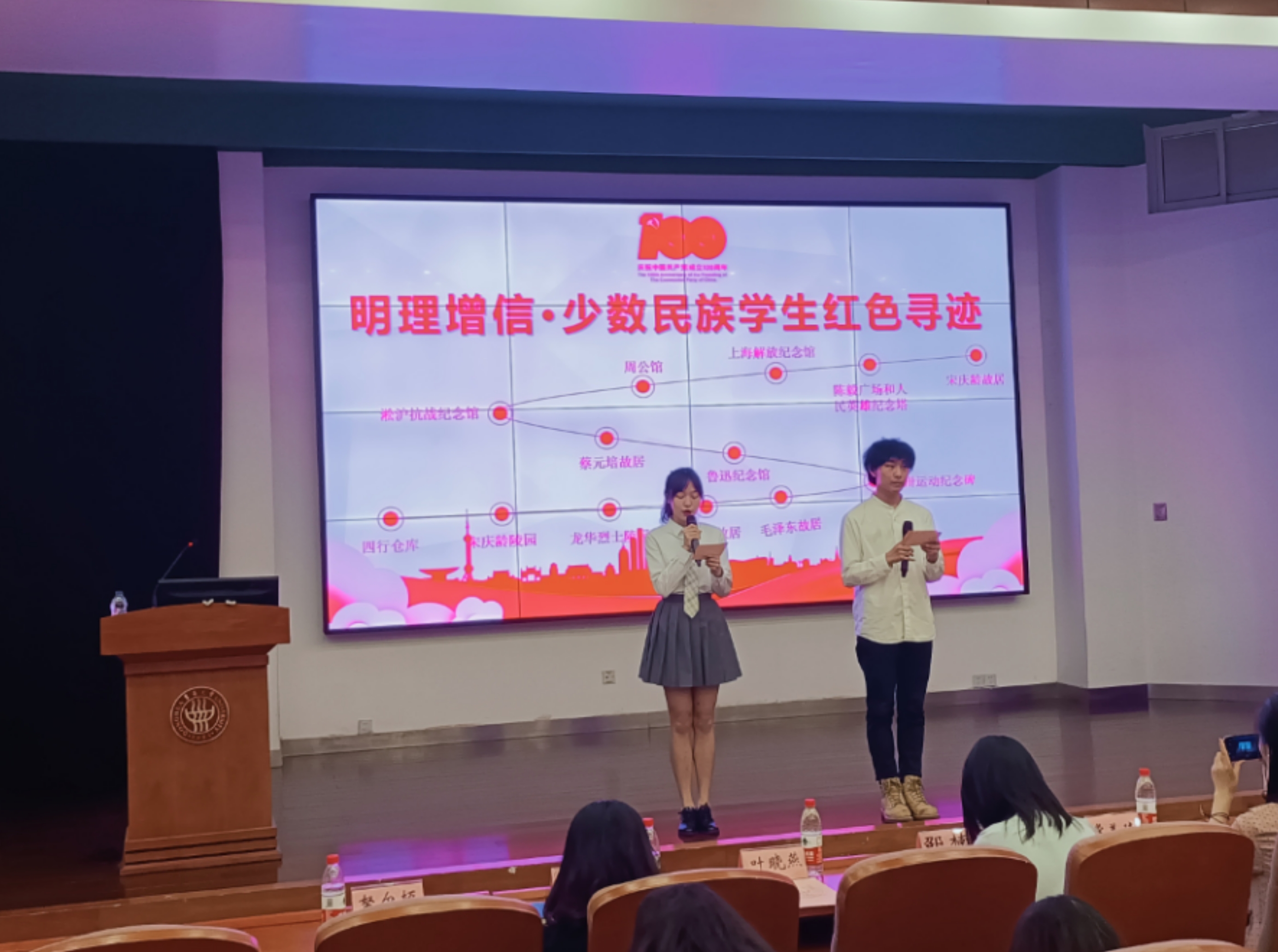 师生同台情景党课、寻访红色地标主题打卡展示…讲台上,51视频 少数民族学生代表正如火如荼地展示近期党史学习教育的系列成果。5月28日,为深入贯彻落实习近平总书记关于党史学习教育的重要讲话精神和民族团结工作重要指示,51视频 组织少数民族学生开展“明理增信”党史教育系列活动展示,进一步提升少数民族学生知史明史、爱党爱国的热情,深化育人实效。