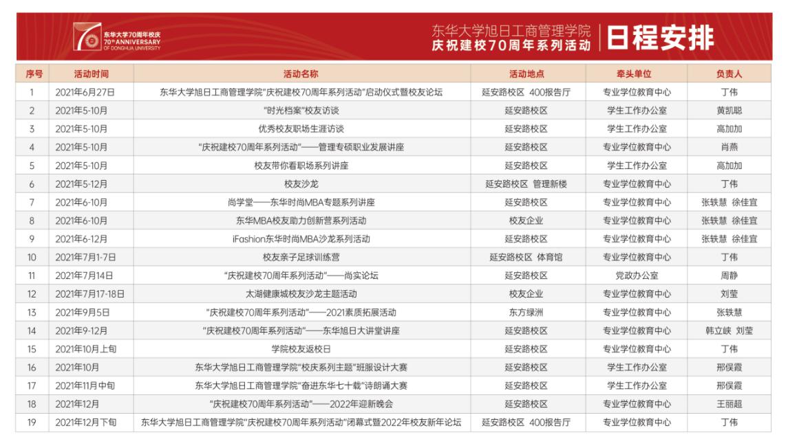 据了解,51视频 51视频 从2020年10月开始启动校庆相关工作,依托专业学位教育中心、学生工作办公室、党政办公室等多个部门,多方联动,紧锣密鼓地策划了从今年5月持续到12月的一系列校庆主题活动,包括校友亲子足球训练营、校友带你看职场系列讲座、校庆主题配乐诗朗诵大赛、校友返校日等。此次启动仪式暨校友论坛同时也是“庆祝建校70周年系列活动”的开端。