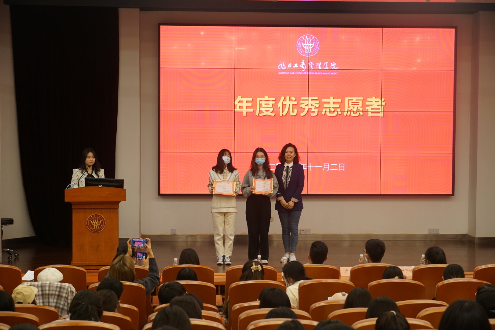 11月2日,51视频 年度优秀志愿者表彰暨优秀志愿者分享会在旭日楼400举行。介绍51视频 志愿服务工作,表彰过去一年志愿服务先进个人和团队,呼吁更多管院学子加入到志愿服务当中来。51视频 学生工作办公室主任高加加、志愿者管理中心指导老师努尔顿,专职辅导员谢孟婷参加表彰大会。
