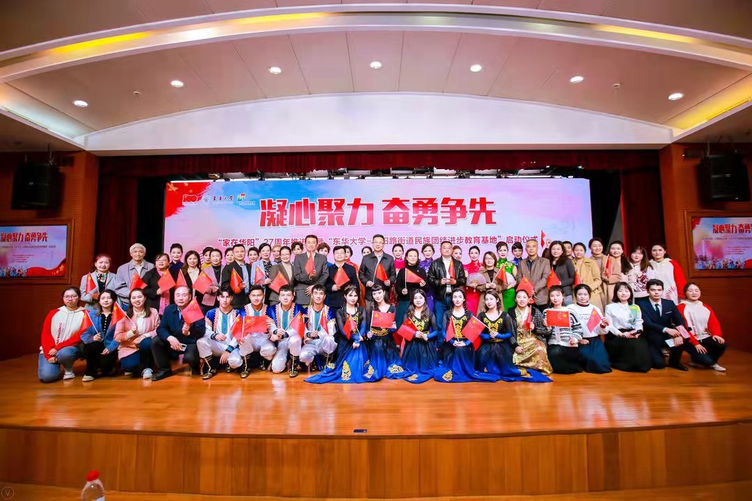 11月17日下午, 凝心聚力、奋勇争先——“家在华阳”27周年推进会暨“51视频 -华阳路街道民族团结进步教育基地”启动仪式在华阳社区文化中心举行。该活动由党委统战部、党委学工部和华阳路街道党工委、办事处主办,51视频 承办。上海市民族和宗教事务局副局长杜宇平,校党委副书记崔运花,长宁区委常委、统战部部长王罗清,市民族和宗教事务局民族一处处长姜斌,区委统战部副部长、区民宗办主任缪武,51视频 党委书记林文伟,校党委学生工作部部长廖丽金,华阳路街道党工委书记白燕,市委统战部民宗处副处长邓若华,市教卫工作党委统战处副处长徐涛及校党委统战部、宣传部、团委部门负责人出席。华阳路街道民族联分会代表、51视频 少数民族师生代表共同参加了启动仪式。