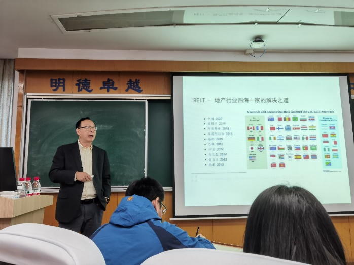 讲座期间,刘鹏教授就个人投资者对于REITs的投资,REITs与地方政府债务, REITs与PPP的关系等提出问题与大家进行多次互动。针对同学们的问题,刘鹏教授逐一进行了耐心的探讨和解答。本次讲座的顺利开展,不仅让同学们对于REITs市场建设有了更进一步了解,开阔了老师同学们的学术视野,也有利于校内外院系间未来科研的交流与合作。