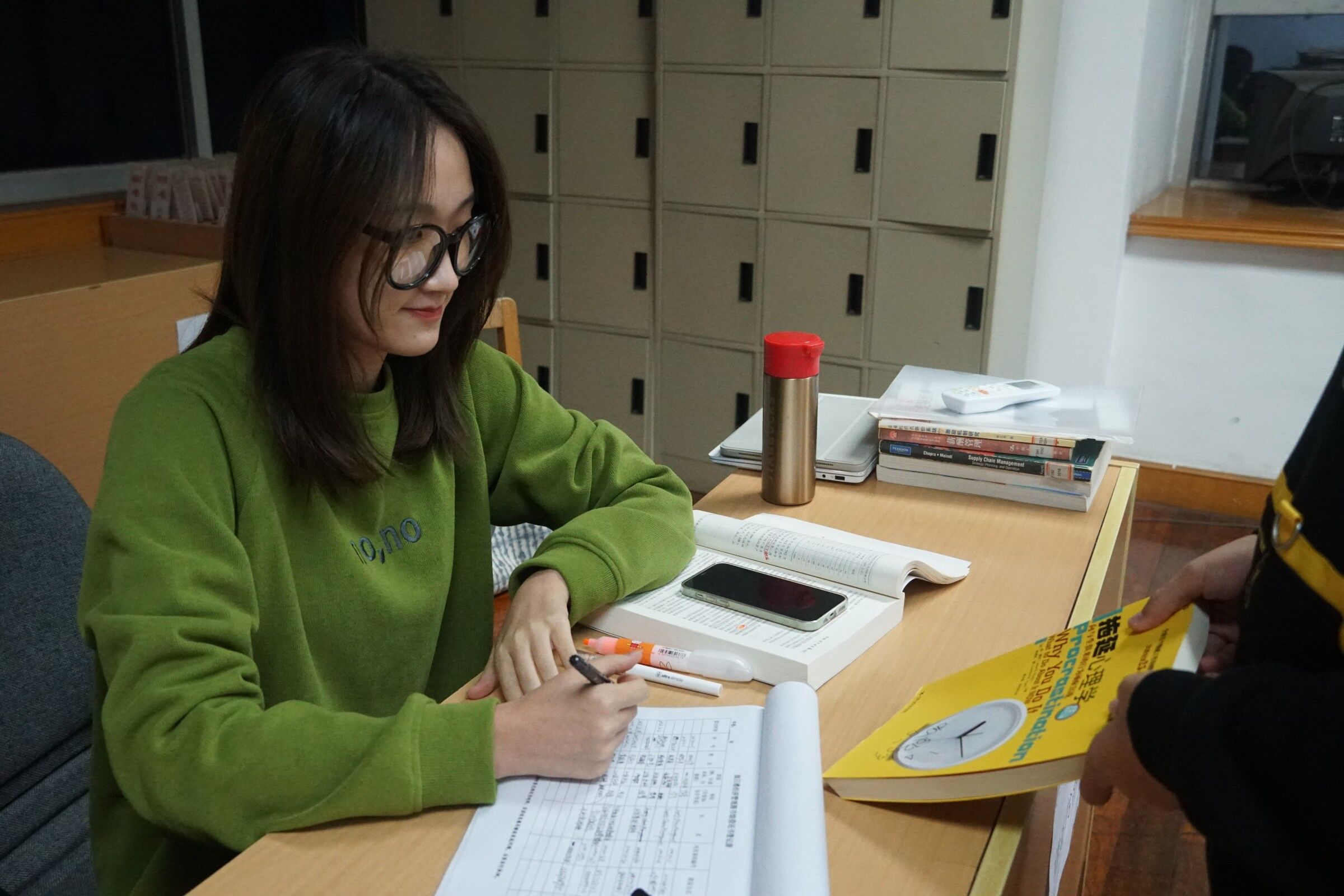 下午六点整,志愿者准时到达旭日楼经济管理图书馆入口处与前一时间段志愿者进行短暂交接,熟悉工作流程和馆内情况。在图书馆读者入馆及借还书时对读者进行登记服务,无读者登记时则关注图书馆秩序,有不良行为发生及时上前提醒。