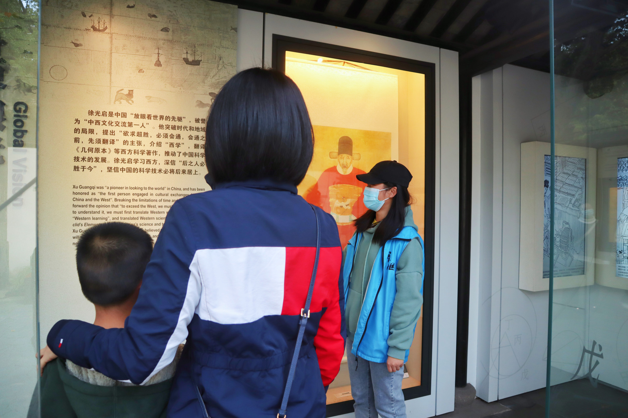 志愿活动中,志愿者负责在入口处提前预约的指引并且检查每个游客的健康码和预约凭证,同时帮助场内人员维持场馆秩序,为游客们详细讲解有关于徐光启先生的故事以及徐光启先生在数学领域的巨大成就。