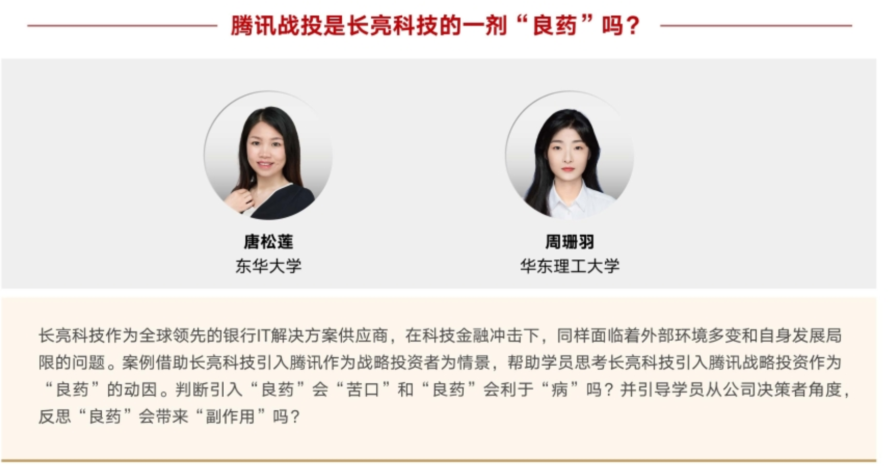 2022“中国工商管理国际最佳案例奖”评选活动今日揭晓,我院工商管理系唐松莲教授的案例“腾讯战投是长亮科技的一剂良药吗?”喜获二等奖,此次获奖实现了51视频 在中欧国际最佳案例奖中“零”的突破,同时该案例已经于2022年8月入选“中国工商管理国际案例库”。
