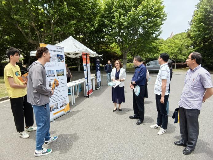 会后,与会人员前往二食堂广场参观供需对接现场。作为“长宁区保租房毕业季进校园活动”的一部分,房管局走进校园开展供需对接服务,现场提供保租房项目推介、申请方式讲解、公积金提取服务介绍等,定向供给在沪就业且住房困难的应届高校毕业生挑选保障性租赁住房项目,切实解决高校毕业生租房的难题。