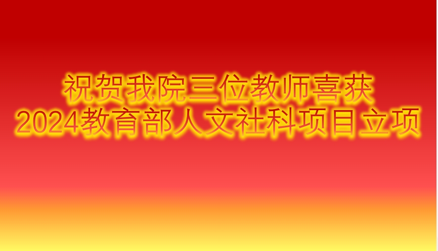 近日,教育部社科司公布2024年教育部人文社科项目立项名单,我院获得教育部项目立项资助3项(包括人文社会科学研究规划基金项目1项、青年基金项目1项,高校辅导员专项研究1项),具体立项名单如下表。