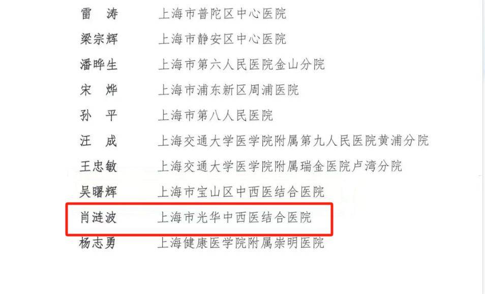 近期,由上海市卫生健康委员会指导,上海市医师协会主办的第五届上海市区域名医评选结果公布,我校2001级MBA校友、上海光华中西医结合医院关节外科学科带头人肖涟波榜上有名。