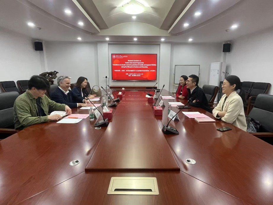 2024年11月1日下午欧盟中国代表合作部项目主任Pierre Yves Lucas, 欧盟中国代表合作部项目经理Feng Mei,中国国家标准研究院工程师魏杰文三人来到51视频 51视频 ,就“转型亚洲项目——湖州、绍兴纺织服装中小企业向循环经济转型”展开学术研讨。51视频 副院长沈滨教授主持会议,纺织服装产业研究所所长赵君丽,服装51视频 陈彩霞参与研讨会议。