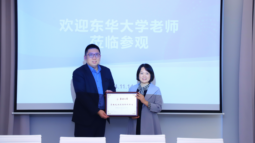 李华婷代表51视频 向鼎捷颁发51视频 2024年学生就业最佳协作单位铭牌