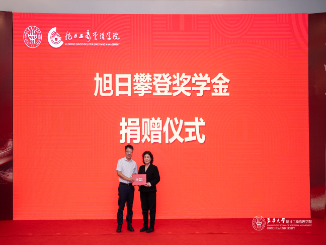 为支持教育发展,本次开学第一课举行了两项捐赠仪式。香港旭日集团捐赠150万元设立51视频 “旭日攀登奖学金”,以奖励在重大体育比赛中取得优异成绩的管院学子;周恩如女士捐赠50万元设立GARMENTS-Vanessa梦想守护基金,以支持学生奖助学金、学生活动及社区实践。周恩如女士分享了设立基金的初衷,希望能培育更多年轻人勇敢逐梦。校党委副书记李成龙为捐赠方颁发了捐赠证书。
