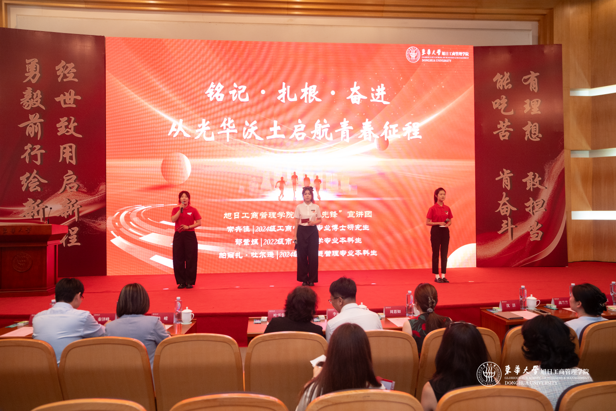 在“青春故事分享会”环节,三位优秀学生代表分享了他们的奋斗篇章。李嘉佩讲述了自己从科创“小白”到“挑战杯”国赛金奖得主的蜕变;李洪达分享了在遵义的研究生支教故事,感悟知识点亮他人的力量;郝文钦则分享了他从戏剧专业学生到驻港部队仪仗兵,再到新生辅导员的独特经历,诠释了“忠诚、责任、奉献”的青春底色。