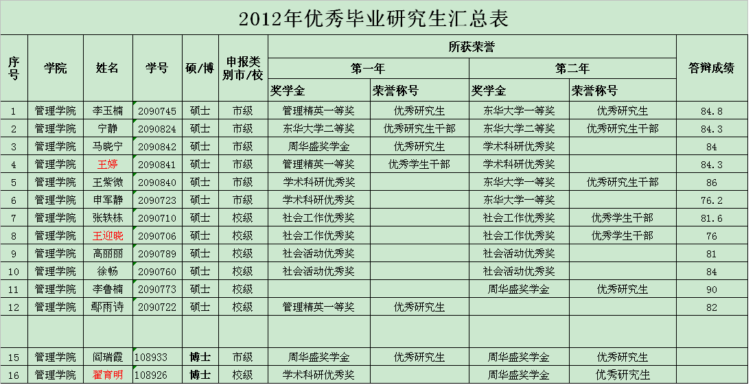 2012届优秀毕业生名单