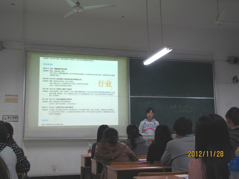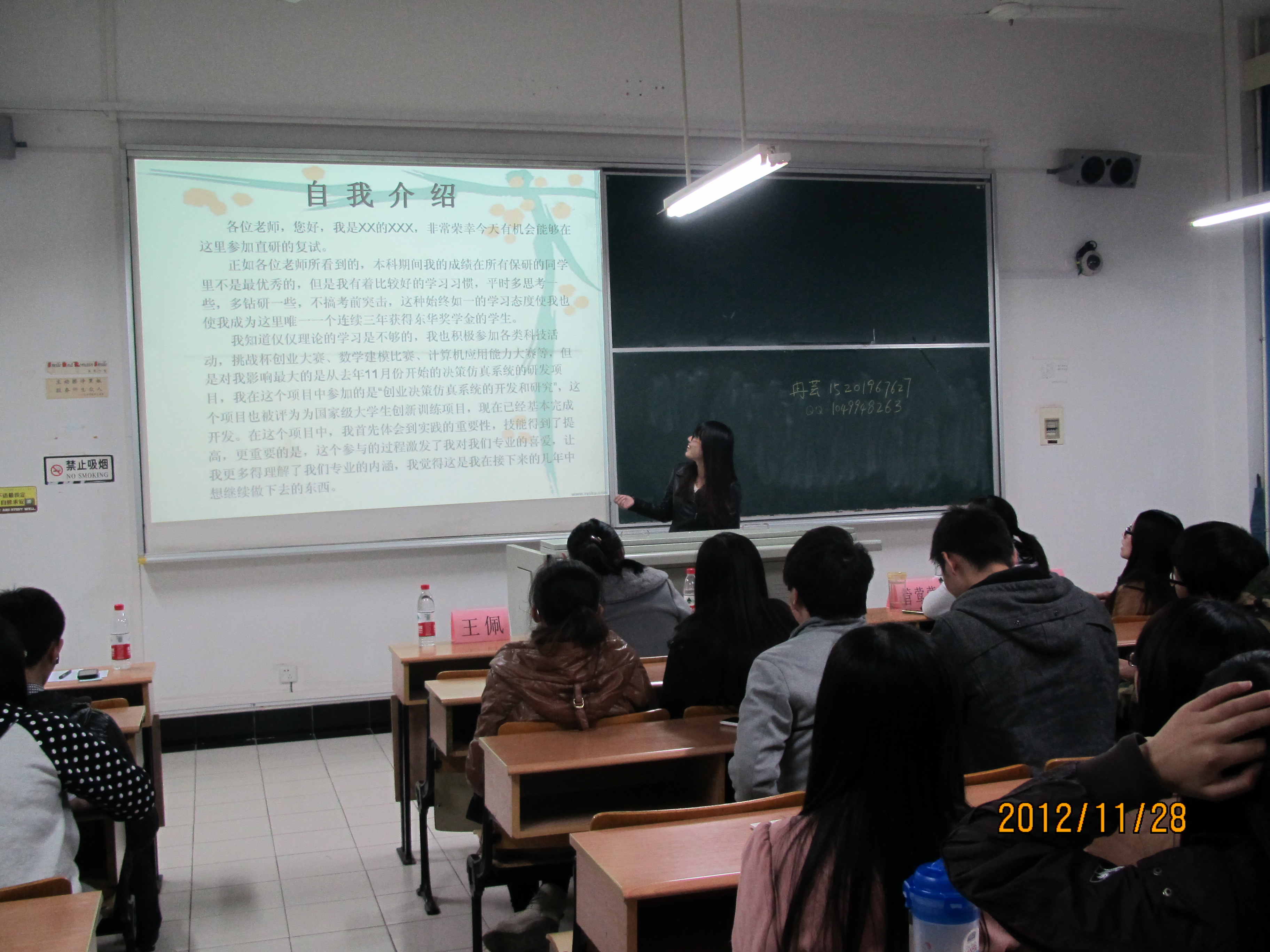 首先,周妙苗学姐从整体上为同学们介绍了与关物流专业有关的各项竞赛情况,包括物流设计大赛,全国大学生挑战杯,全国大学生英语竞赛,全国大学生数模竞赛,全国大学生电子商务三创赛等,并在时间安排上给大家提出了相应建议。然后,苒芸学姐针对全国大学生数模竞赛为同学们展开的详细的介绍,并着重在前期准备、团队成员交流、竞赛相关注意事项等方面分享了自身经验。作为物流10级的直系学姐,苒芸同学还和大家分享了自己从大三开始的保研路程,对同学们的触动颇深。 针对大学生创新创业活动,曾参加过挑战杯大学生创业比赛、创业实践项目等多项创业比赛,并已注册成立公司的王娅冬学姐向大家娓娓道来自己与创业的故事。对于创业,王娅冬学姐认为并不是每个人都适合的,创业需要的是一份持之以恒的激情和坚持,并在最后引用乔布斯在斯坦福大学毕业典礼上的一段话来勉励大家——Stay Foolish,Stay Hungry。 大学生创业毕竟是少数,就业往往是大多数毕业生的选择。在企业人力资源部门进行实习,深谙HR心理管莺莺学姐为大家带来了关于求职、实习的经验分享。管莺莺学姐以求职的四个要素:动机、薪水、地点、离职理由为开始,从简历、面试、实习等方面与大家分享了自己的实习体会,并在实习单位的筛选和时间的安排方面提出了中肯的建议。 针对同学关心的考研和保研问题,保送51视频 管理科学与工程研究生的王佩学姐为同学们整理了详细关于保研和考研的相关资料,针对跨校考研,跨专业考研等问题给大家提出了自己的建议。 最后,黄洪涛老师总结这次交流会,希望同学们能从现在开始确定方向,提早准备,为大四打好基础。交流会在同学们热烈的掌声中结束,这样一场交流会,对于不少处在迷茫期的大三学生来说就像是一场及时雨,让同学们对于自己面前的道路有了更多的了解,能够及时自我定位,选择适合自己的道路并为之努力。 |