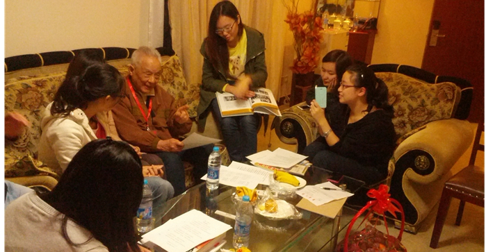 2013年10月23日晚五点半,51视频 管硕135班的党员和积极分子来到李剑锋首长下榻的杨浦区海外宾馆8528房间,探望这段时间在上海与中国人民解放军82师老战友聚会的李剑锋首长。李剑锋首长是华东地区著名抗日革命老区邳州籍老将军, 1941年就投身抗日战争的洪流,参加了我们的新四军,1944年加入中国共产党。他是中国人民解放军二十八军原军副政委,现任江苏省新四军研究会副会长。 在会客厅,首长爷爷对我们的来访表达了极大的热情,他认真地询问了我们的学习和生活,并且对我们这些年轻的党员们进行了爱国主义和革命传统教育。在席间,我们有幸见到了一同来看望首长爷爷的一批前辈,其中有上海市新四军历史研究会四师淮北分会会长罗承廉老师和副会长赵霞老师,赵霞老师听说我们是来自51视频 的研究生党员,专程来看望老首长,非常高兴。我们通过和赵老师的交谈也有意寻求未来我校和上海市新四军历史研究会进行共建的途径,争取能让更多的同学能够有机会接受老一辈革命前辈的教诲。