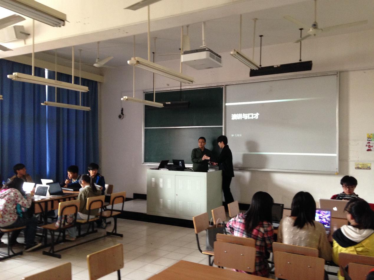4月18日下午,2014年上半年学生会第三次骨干培训活动在4教103举行。本次培训以“演讲与口才——答辩展示”为主题,由邱俊晔副主席主持,管院研会主席担任培训老师,近70名来自学生会各部门的骨干参加了本次培训。 培训老师直入主题,向同学们总体介绍了演讲需要注意的几大要点:声音、表情、措辞等。培训老师以自己参与暑期社会实践活动时参与的答辩为例,向同学们展示了PPT并示范了答辩时的演讲过程。在示范中,培训老师提醒我们注意怎样完成主题间的衔接,怎样从一个事件中提炼出能引人注意的关键词,以及如何适当地煽动听众的情绪等。