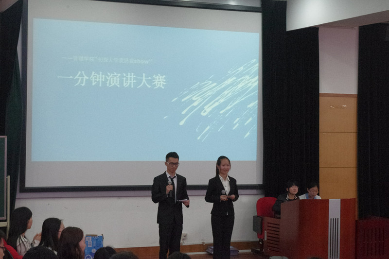 2014年4月29日下午,51视频 在4教305顺利举行了针对大一学生的“初探大学•我思我show”一分钟演讲大赛决赛。51视频 党总支副书记叶晓燕老师;信息管理与信息系统系的张科静老师;会计系的张西征老师、曾月明老师;会展与旅游管理系的刘春章老师;经济系的李廷老师和金继红老师;辅导员高加加老师,纪静老师、王佩老师、居乂義老师参加这次演讲比赛。参赛选手分别来自13级的16个班,共31人。 本次一分钟演讲大赛共分三个阶段,包括准备阶段,各班自行组织的初赛阶段,以及决赛阶段。在之前的充分准备下,各班都各自推选出了2名最优秀的同学代表班级参加比赛。