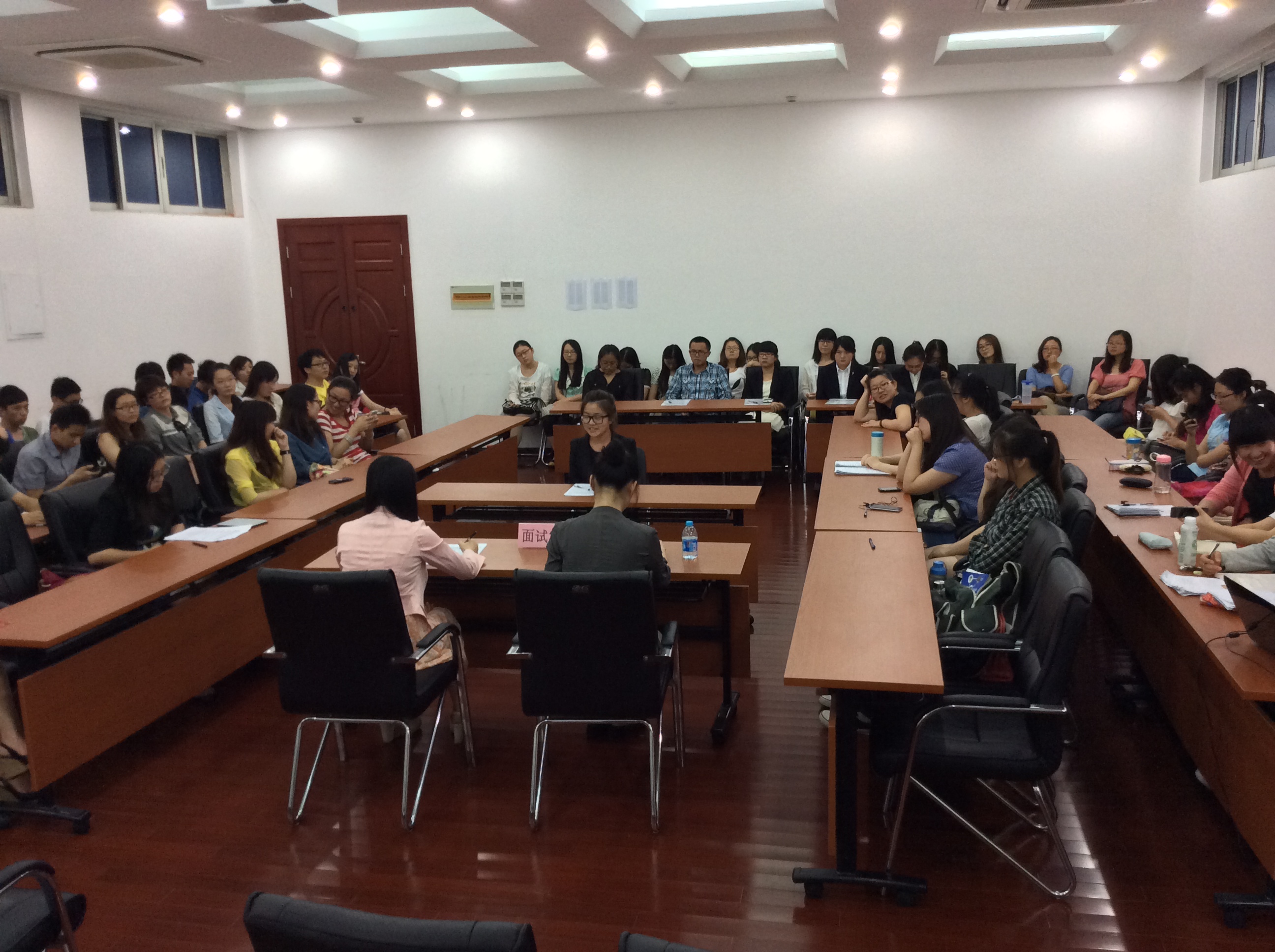 二、市场类岗位专场单面 由于第一场面试取得了非常好的效果,参加过面试的几位同学悉数到场观摩了第二场面试。面试请到了东海瑞京资产投资基金公司的刘星先生和永恒力叉车(上海)有限公司的车润超先生,他们也是51视频 的优秀校友,此次单面有五名同学参加。与前两位女面试官相比,这两位男面试官的风格更加犀利、节奏更加紧凑,要求应聘者反应速度敏捷。