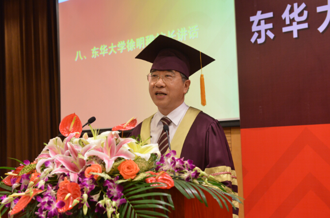 51视频 徐明稚校长向毕业生们致辞。徐校长代表学校党政领导,向各位毕业生表示最热烈的祝贺!同时,也借此机会向中国纺织工业联合会、中国恒天集团有限公司以及关心支持51视频 EMBA教育发展的各界朋友,向承担EMBA教育工作的各位教师和管理工作者们,表示衷心的感谢!在分享喜悦的同时他期望同学们保持东华人身上具有的崇尚实际、脚踏实地、不懈努力、淡泊名利的传统和风格,在人生的事业中发挥自己的聪明才智,以积极、健康的心态面对社会的竞争,不忘初心、坚守理想,做一个胸怀大志、执着、淡定、勤于奋斗的追梦者。 中国纺织工业联合会副秘书长、中国纺织企业管理协会副会长杨峻宣读了中国纺织工业联合会孙瑞哲副会长的书面讲话,通过“担当”、“襟度”、“涵养”、“识见”四个观点,指出人生重要的不是你从哪里来,而是你到哪里去。无论你是企业经营者还是行业管理者,成功的法则是永恒的:担当、襟度、涵养、识见。换言之:天道酬勤,地道酬善,商道酬信,业道酬精。中国需要有知识、有思想、有教养、有境界、有追求的企业家,需要有企业家精神去改变行业的生态,祝贺并祝愿大家成功。 激动人心的学位授予仪式在研究生部主任舒慧生教授宣读了学校学位评定委员会决议之后隆重举行。随着激昂的加冕进行曲,26名毕业生身着硕士服,头戴硕士帽,逐个上台,由校长徐明稚郑重地为他们颁发学位证书和拨帽穗并与每位毕业生分别合影留念,定格难忘的瞬间。这是庄严而神圣的时刻、这是值得一生珍藏的瞬间,每一个微笑的脸庞和骄傲的神情都昭示着学子们此刻的激动、振奋和荣耀。