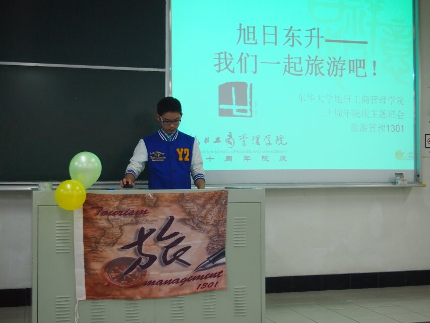 20年前,东华成立了一所名为“旭日”的工商51视频 ,初露锋芒;20年后,旭日已成骄阳,二十年风雨兼程,二十载旭日经管人的不懈努力,我们的51视频 已经成长为具有国内一流教学水平的经管51视频 。当我们骄傲地宣称着自己是51视频 的一份子,我们深刻感到如今正是向历史致敬、展望未来的时候。为纪念这对51视频 、对我们有重大意义的特殊日子,凝聚全班力量为做更好、更优秀的旭日经管人,旅游1301班于2014年11月11日下午13点30分在四教210室举办“旭日东升——一起旅游吧”特色主题班会,受到全体师生的热烈欢迎。