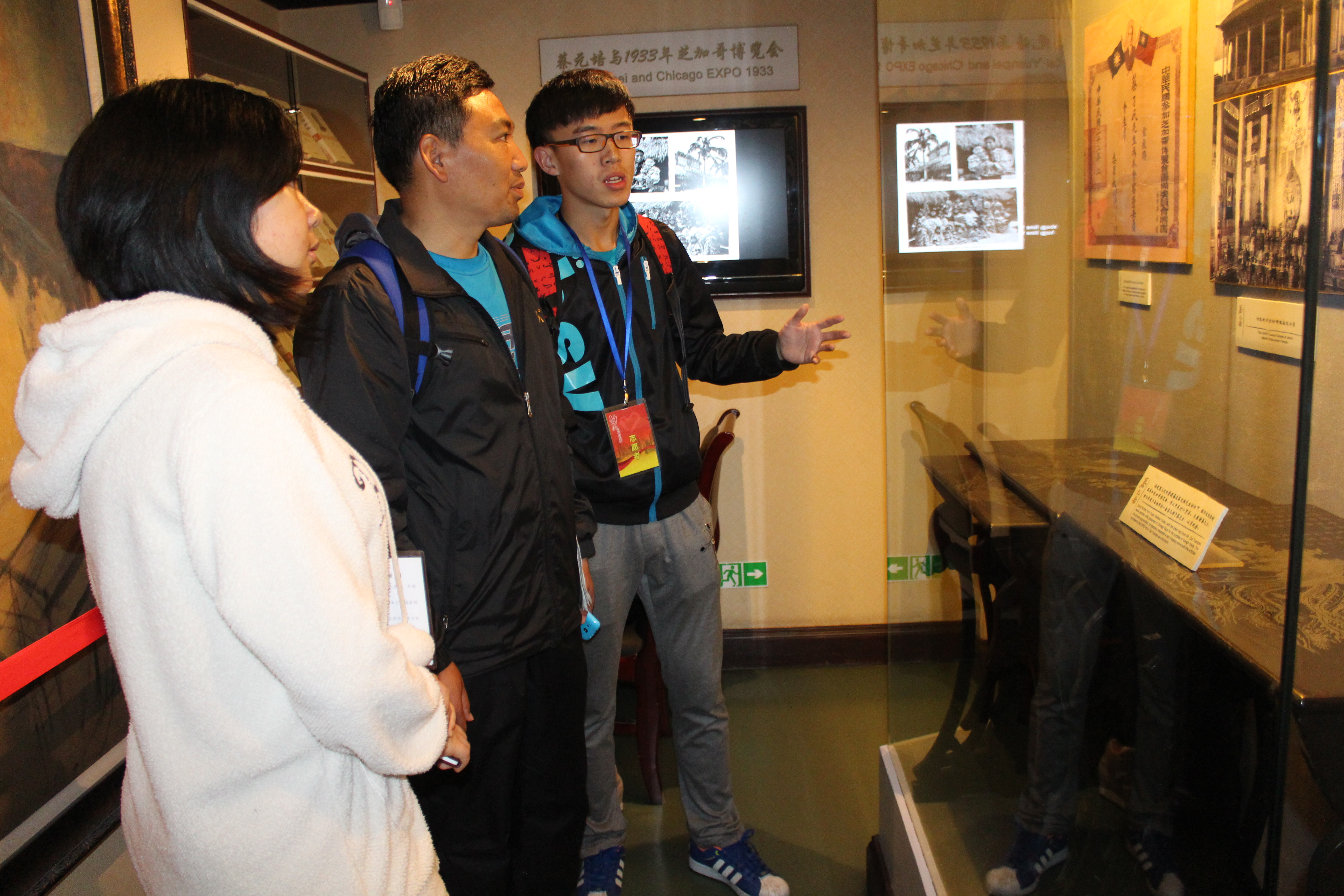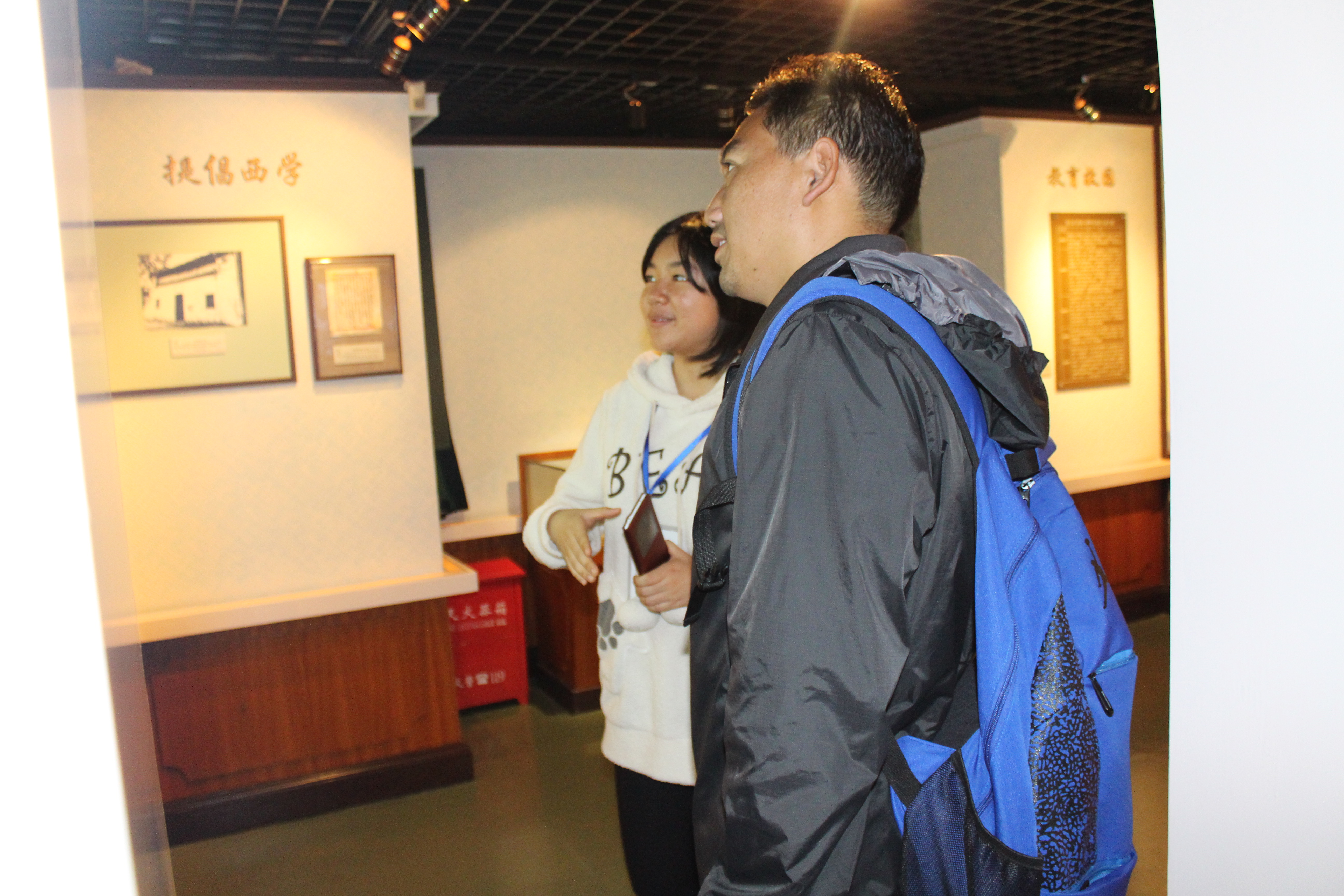 到达目的地后,管理人员让志愿者们自行参观周围景观。走在光滑的小路上,欣赏着宁静的环境——典雅的民宅建筑,苍翠的植物,志愿者们浮躁的心逐渐静了下来。人们常说:一方水土养育一方人。而在此时,大家不约而同感叹道,蔡元培一个人改变了这一方水土。 新志愿者先请学姐带领新加入的志愿者们和游客们参观一番。参观者进入屋内,首先看到的是蔡元培先生的方形塑像和印有他生平事迹的圆形底座,这代表着蔡先生“处大事以方,处小事以圆”的处事原则。紧接着在往里走,摆放着蔡先生出生的地方——笔飞弄的模型,跟此处的蔡先生故居同有一种安静祥和的味道;走进里间,墙上挂着蔡元培幼时住所的照片以及他曾工作的古越藏书楼。年轻时,他在这里读了大量藏书,为未来更深层次的求学之路打下了坚实的基础。大家看到这些不禁自愧不如,更加佩服蔡元培先生!随后,志愿者和游客们又来到了蔡元培在不惑之年留学德国时的照片展示处,这里记录了他在德国的学习生活:他在德国修学了五十门课程,内容涉及哲学,文学,美学,心理学,民族学等各个方面。这足以看出当时的蔡元培已把救国救民作为自己的责任,积极学习西方先进文化,探索强国之路。随后,游客们又来到赴法勤工俭学运动展示处——由蔡元培,吴玉章等人发起,旨在鼓励民国学子积极学习西方文化精粹报效祖国的一场运动。这场运动造就了许多杰出的无产阶级革命家,如周恩来,邓小平等。从另一个门走出室内后,观赏着院子里葱葱郁郁的草本植物时,志愿者们不禁想到,蔡先生这一生的丰功伟绩不正如这茂盛的植物,已在人们心中悄悄发芽生长,并愈发青翠吗?