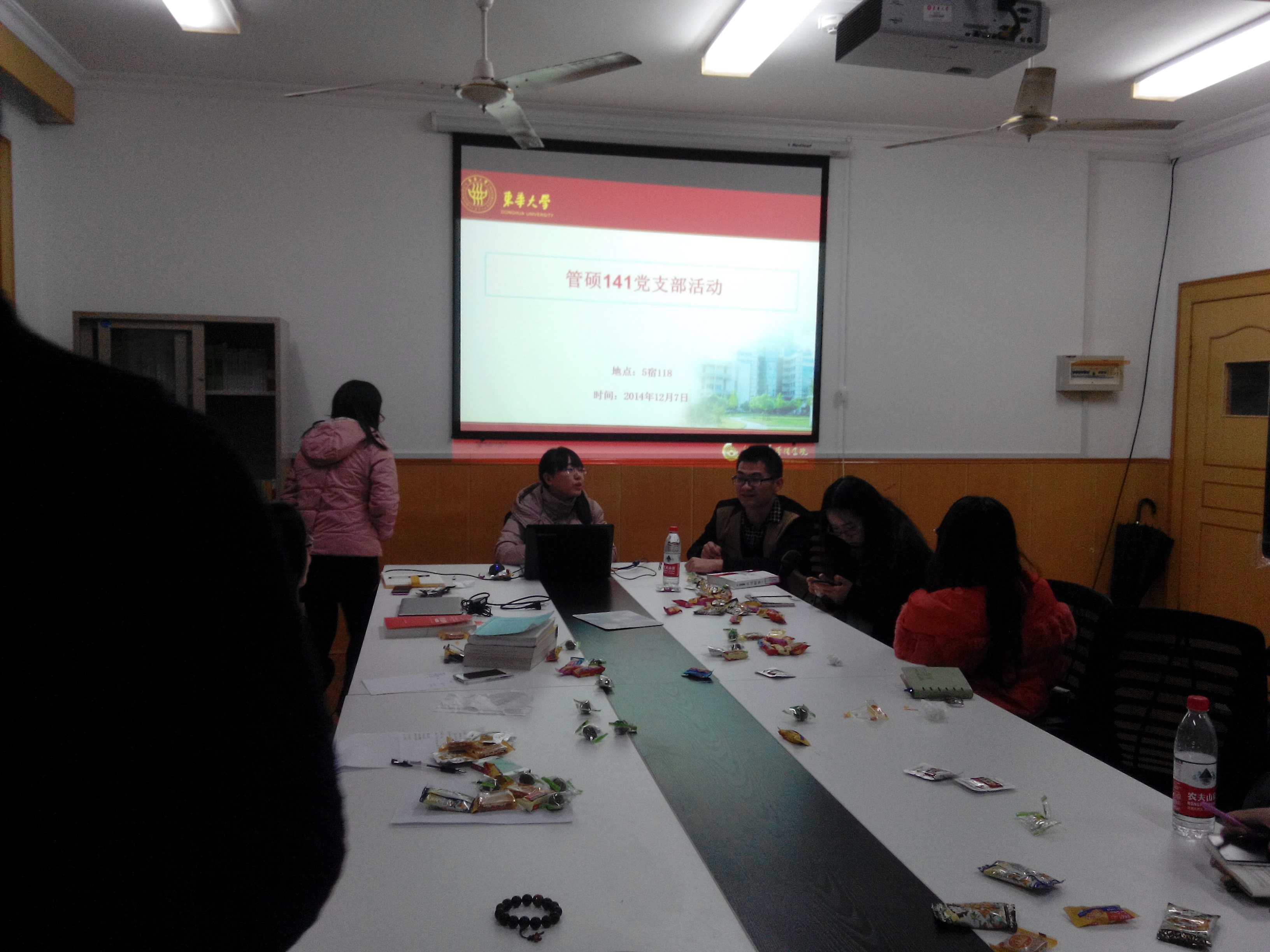 凛冽的寒风吹走了秋季的凉爽,紧接而来的就是忙碌的期末复习阶段,在这学期快要结束之际的2014年12月7日,由51视频 管硕141党支部党章学习小组组织,全体141班同学参加的学习讲堂活动在5宿5118举行,班级32位同学准时参加了此次班会,本次讲堂主要分为两个环节,一个是分学习小组活动,一个是课程讨论活动。通过此次学习讲堂同学们对本学期学习的各门主要课程的复习内容有了具体的了解,明确了学习的方向,同时也组建了班级的学习小组为以后班级同学的学习提供了便利。