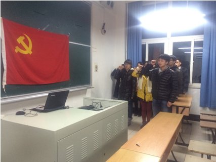 在大家的热烈掌声之后,王蕊和齐晓宇同志对自己被接受为预备党员进行表态。 在此之后,王蕊、齐晓宇以及今年以来发展的曾志阳、赵晓彤、吴灏、金逸文、许亮、李梦旭、牛曼竹同志一同来到讲台前进行宣誓,此次宣誓由蒋勇同学领誓。 本次党员发展大会在大家集体起立奏唱《国际歌》当中接近尾声。 最后,支部书记郝明洋老师对本次发展大会作出了系统的总结,在总结了王蕊和齐晓宇的发展之路后,他也对支部未来的发展提出了展望,并对支部党员和前来参会的积极分子寄寓了厚重的期望,希望大家在日后都能努力严格要求自己,成为一个更优秀的人。 撰稿:朱深深 |