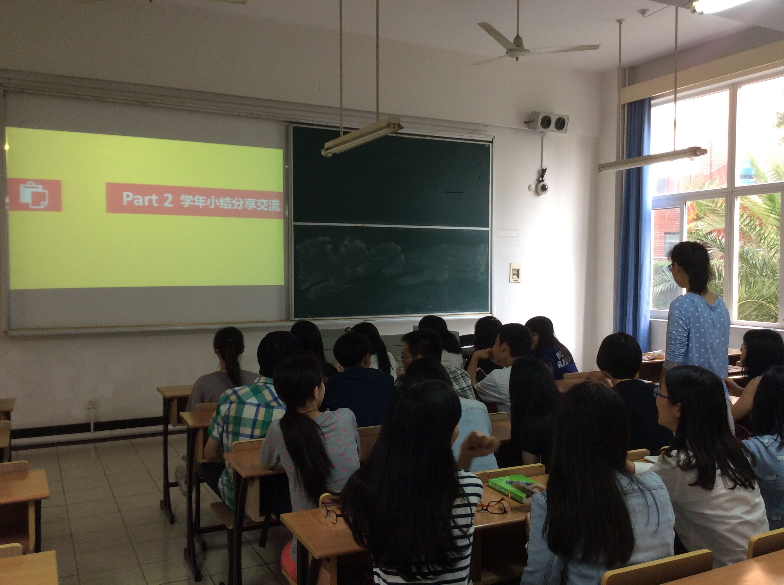 班会分为四个环节,首先,班长上台总结了一年来班集体取得的各项荣誉,也为整个班委会在磨合阶段出现的漏洞向大家表示歉意,同学们认真地听着,对班级荣誉感到骄傲自豪,同时也用热烈的掌声感谢全体班委。我相信愈发团结的会计1402班会在未来取得更大的辉煌。随后,学习委员上台介绍了学霸们的四六级复习经验与考试技巧,同学们时不时的低头记录着,学习方法的交流一定会帮助大家提高四六级备考与期末复习的效率。 谈到课余生活,为了提高自己的组织能力与交流技巧,为今后积累更多的经验,大家都或多或少地参加了学生会,社团等学生组织。于是,接下来,来自不同学生组织的代表与大家分享了或喜悦,或忙碌,或狼狈,或精彩的工作情况,同学们不仅在这样的经验交流中收获了欢笑,而且让同学们进一步认识了学校的各种组织,想必明年会有更多人参与到这些活动中去。