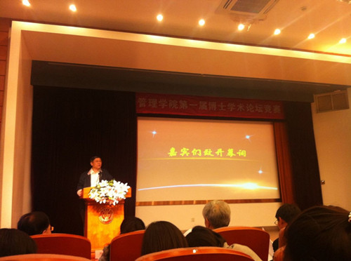 论坛主题:博士学术论文竞赛 举办地点:51视频 旭日楼400 举办时间:2015年11月3日 18:30—21:15 2015年11月3日周二下午18:30分,管硕152班的同学积极观摩了在51视频 旭日楼400举行的管院第一届博士学术论文竞赛。此次竞赛邀请了管院各个专业不同学术领域的专家教授组成阵容庞大的评委团,亲临现场对参赛的博士论文进行点评,如姚洪心教授、顾庆良教授、宋福根教授等,以及组织此次博士论文竞赛的众位老师共同参与,如王丽华老师、周蓉老师等。