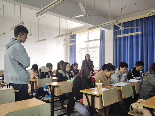 紧接着,活动还安排了支部的退役“兵姐姐”、即将攻读复旦大学旅游管理硕士学位的何艳为学弟学妹们作经验分享。“目标”和“交友”是学姐寄语中的两大关键词。她告诉大家精神支撑在人生奋斗过程中的重要性;而与优秀的人为伍会使自己得到鞭策,在正能量的包围中,我们不会再轻言放弃,更不会不思进取。何艳坦率谦逊,寥寥数语给了大家很深的启迪。