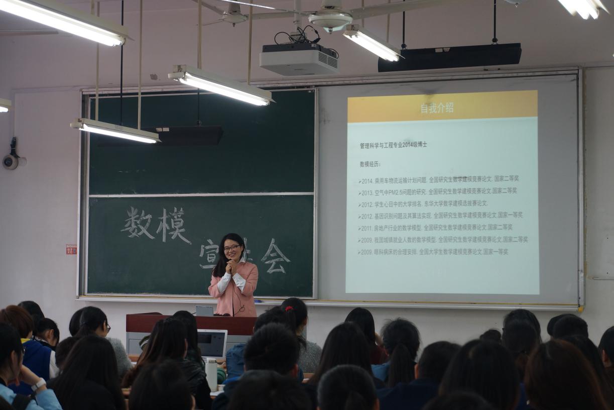 4月12日下午,经过数模俱乐部的精心策划和组织,数模宣讲会于延安路校区四教103教室举行,在宣讲会上,同学们聆听了数模获奖者罗煦丹、吴伊婷、范丹丹分享了她们参与数模竞赛的经历!本次宣讲会由数模俱乐部主办,多数51视频 本科生与研究生参加了宣讲会。