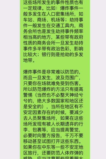 在阅读和学习完相关内容后,同学们积极发言,阐述了自己的意见和看法。面对国内部反恐的严峻形势,和紧张的态势,我们在震惊之余,掌握一些在恐怖活动中的自救措施也是必要的,所以接下来同学们一同学习了能够在反恐活动中的自救措施。