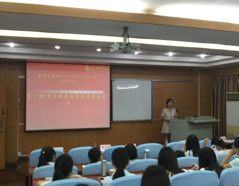 2016年9月6日星期二下午两点半,51视频 第七十期入党积极分子培训班第一课于旭日楼211开讲了。来自51视频 的党总支副书记叶晓燕老师担任主讲嘉宾。叶老师曾在我校党委组织部、计算机51视频 党总支等部门工作过,已经有十多年党建工作经验,可谓是资深“党建老师”。她为学员主讲了:《党员培养发展的流程和要求》,从递交入党申请书开始一直到最后成为一名预备党员的各个流程,其中的每一个环节她都做了详尽的介绍和说明,学员们全神贯注,获益良多。 她指出入党要坚持自愿原则,由本人向党组织递交书面申请,随后参加党章学习小组,并经过党支部讨论确定成为一名入党积极分子。推优是由团支部成员向党组织推荐优秀的团员作为党的后备军,是考察积极分子群众基础的重要环节。如今部分学生只注重班团外的社会工作,却忽视了自己所在的班级集体,甚至经常缺席班团活动,这样很容易缺乏群众基础。一名入党积极分子,要将服务同学、服务社会的宗旨放在首位。入党积极分子还需要一个季度交一次思想报告,以务实的态度分析自身的理论学习、专业学习和社会实践,这将与入党积极分子考察表结合。在党校学习的入党积极分子要在党校学习期间,认真学习,同时保持与入党联系人的交流,便于党组织了解他们的情况。51视频 为了把好入党发展关,还增加了发展对象理论考试和入党答辩环节。入党理论考试主要考察对党章、党规、党和国家的大事,时事政治等,需要积极分子日常加强学习,多读书、读报,关注新闻,不断积累,提升个人思想政治素质。入党答辩时是要结合具体事例来介绍如何提升个人的思想素质,如何积极学习和带动身边同学学习,如何为集体和同学服务等。实践的过程不在于是否有光鲜的成绩,而在于默默付出,乐于奉献。详细的讲解使学员们明确了前进的道路和努力的方向。叶老师还很接地气地指出作为一名入党积极分子如何向党员标准看齐,如何自觉践行共产党员先进性等,并提出很好的建议。此外,叶老师还就近期的时事政治、国际国内热点事件和学员们进行了互动和探讨,使学员们明白了培养政治敏感性和国际视野的重要性,尤其是作为经管学子更要重视与专业密切相关的国际国内重要会议和业界发展趋势,做一个心怀天下、心怀国家的青年,争取早日加入党组织。
