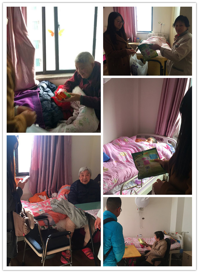 12月24日下午,51视频 工商系学生党支部10位党员带着用支部奖励金700元采购的爱心慰问品,来到位于延安西路1652弄33号(法华镇路920号)的上海市法华颐养院,为老人们带来欢乐、传递温馨。据悉,该养老机构是一所面向全市、主要为长宁区老人提供养老服务的,集住养、康复、医疗保健、文体娱乐于一体的新型老人家园。